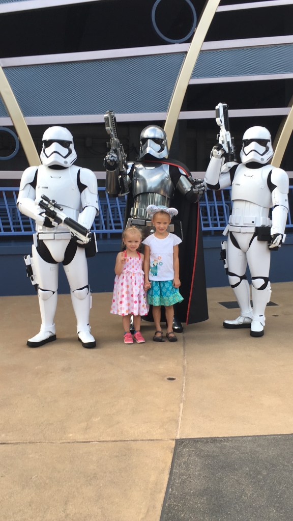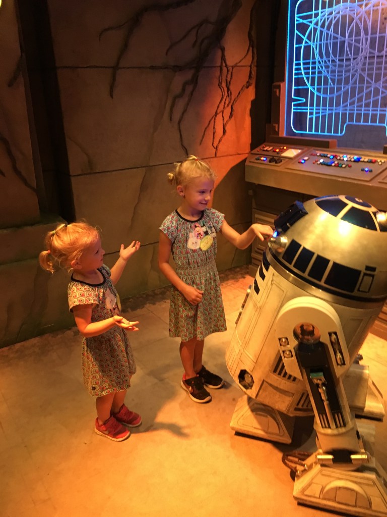 N was most excited about the rides, particularly the rollercoasters that her little sister couldn’t go on. W was all about the character meetings, which came as a bit of a surprise to us. She really, really wanted to meet Cinderella, but, alas, we never managed to catch her. We met princesses and Toy Story characters and Star Wars legends. When W met R2D2, she got all giddy and told him, “I saw you in the movies, and I have a water bottle with you on it!” While the lines for the characters were sometimes longer than the lines for the rides, the characters took their time with each and every kid. They posed for pictures, asked questions and really let the kids enjoy their time with them.