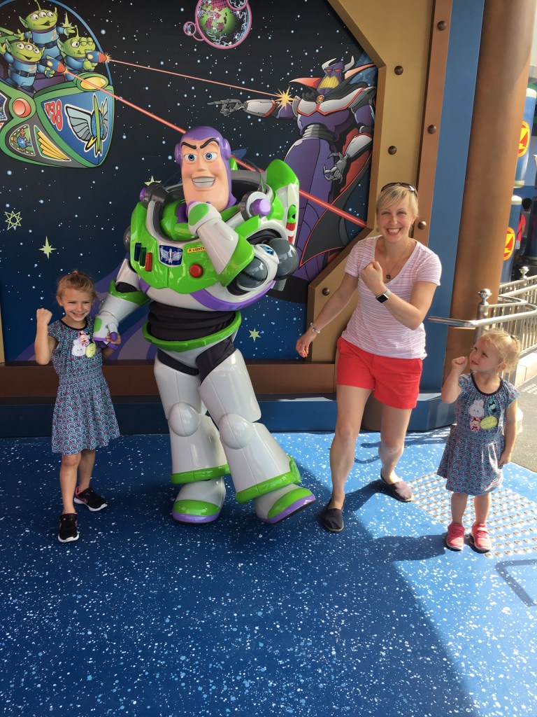 Once we got into the park, we continued to be impressed. Lines were short (no longer than 10 minutes), and with the exception of Space Mountain and another rollercoaster, for which W was too small, we were able to ride on all of the rides as a family. Even the rollercoasters accommodated families, allowing us to all wait in line together and then to do a “parent swap” so that C and I could take turns staying with W.