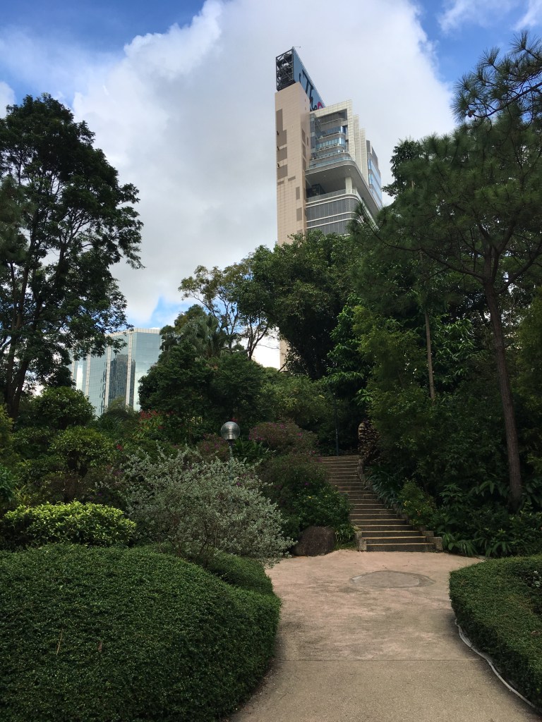 If Seoul was a study in contrasts, Hong Kong was a study of palimpsests. Our first stop was the Hollywood Road Park, which was adjacent to our hotel. It was a lovely, quiet space with a koi pond, pavilions and, of course, a playground. The park’s occupants were a good sampling of the city: a group of women doing aerobics, older men relaxing and chatting underneath the pavilion, a few runners, and lots and lots of children—children speaking Cantonese and English (from Britain and Australia, mainly), French, German, Mandarin and more.