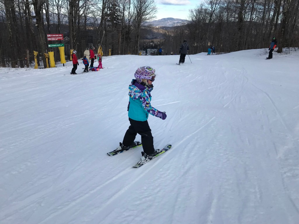 Nola took off–cautiously–right away and really improved over the course of a day and a half. She even made it top-to-bottom on Stratton’s long beginner trail. Willa was a bit more skeptical, but once turning clicked, she was off carving some pretty amazing (nearly parallel!) turns. She was a speed fiend but never quite picked up stopping, so she was a bit of a wild card out there!