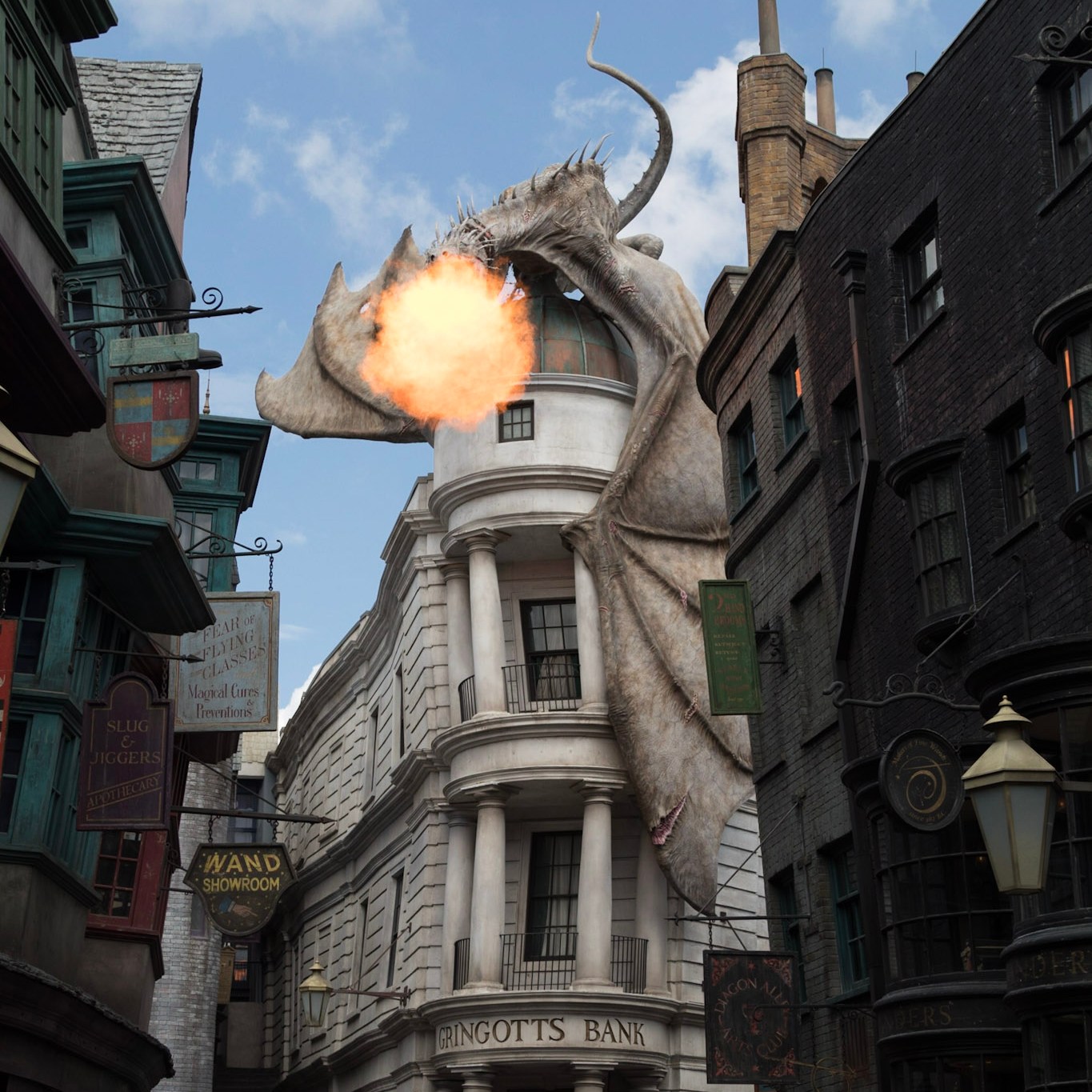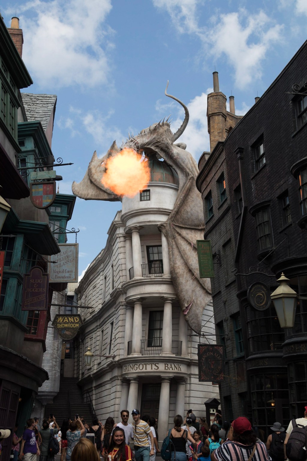 The Wizarding World of Harry Potter brings all of the familiar wizarding scenes to life. Once we actually found “London” at the back of the Universal Studios park, we stepped into the books. Among our first stops: Diagon Alley, complete with Ollivanders, Weasleys’ Wizard Wheezes and Gringotts (the dragon on the roof breathes real fire, and next door you can exchange your muggle money for wizard money), among many other shops and storefronts we knew from the books and movies.