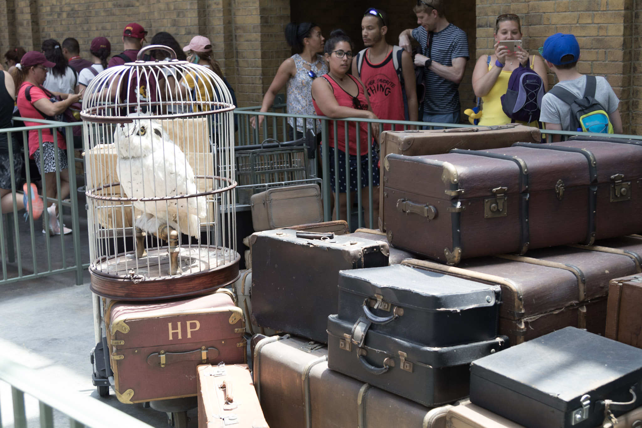 After choosing new wands at Ollivander’s and trying them out at the various interactive wand spots throughout Diagon Alley, we grabbed a few glasses of frozen butterbeer (yummy but sooo sweet) and headed over to Kings Cross Station to jump on the Hogwarts Express.
