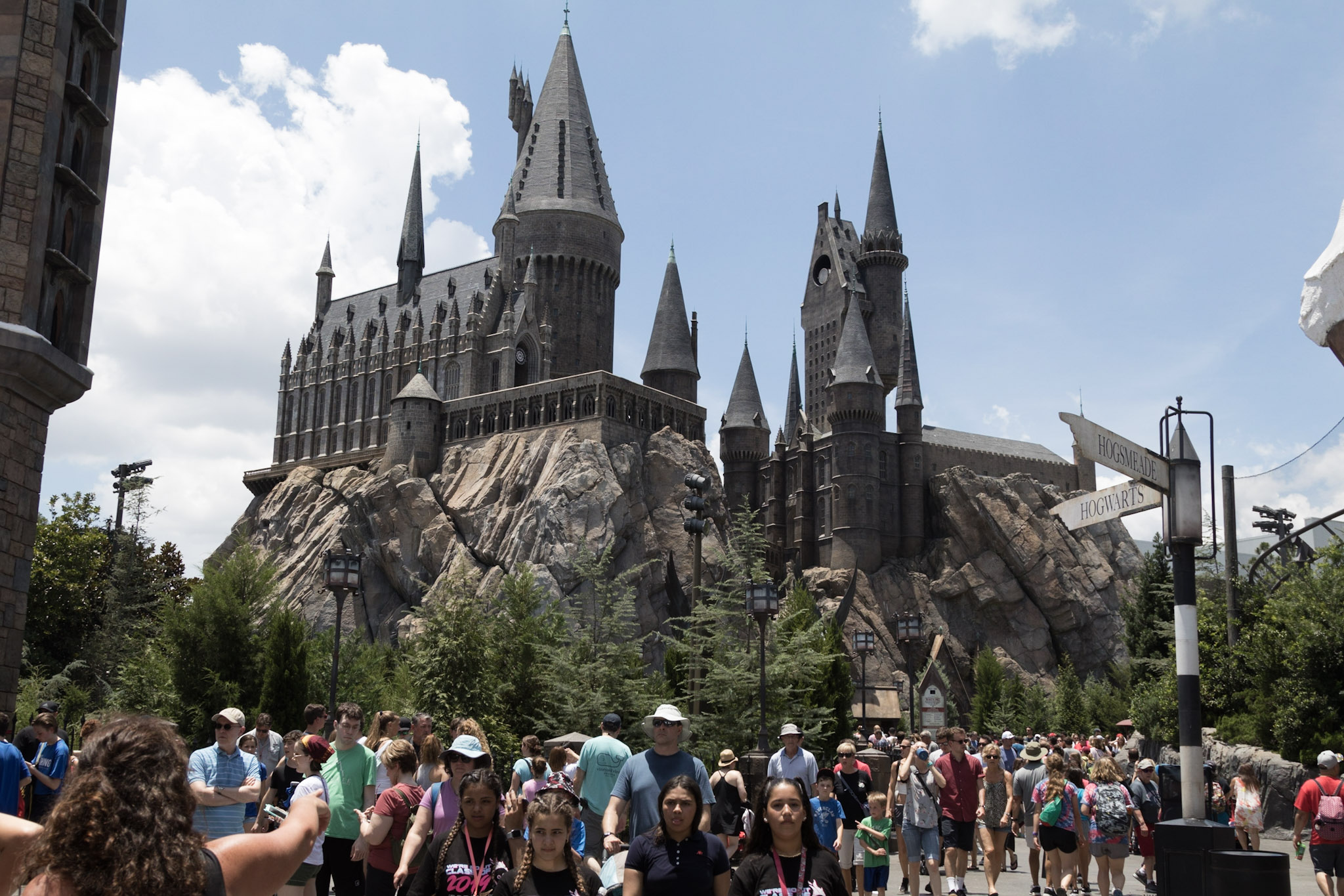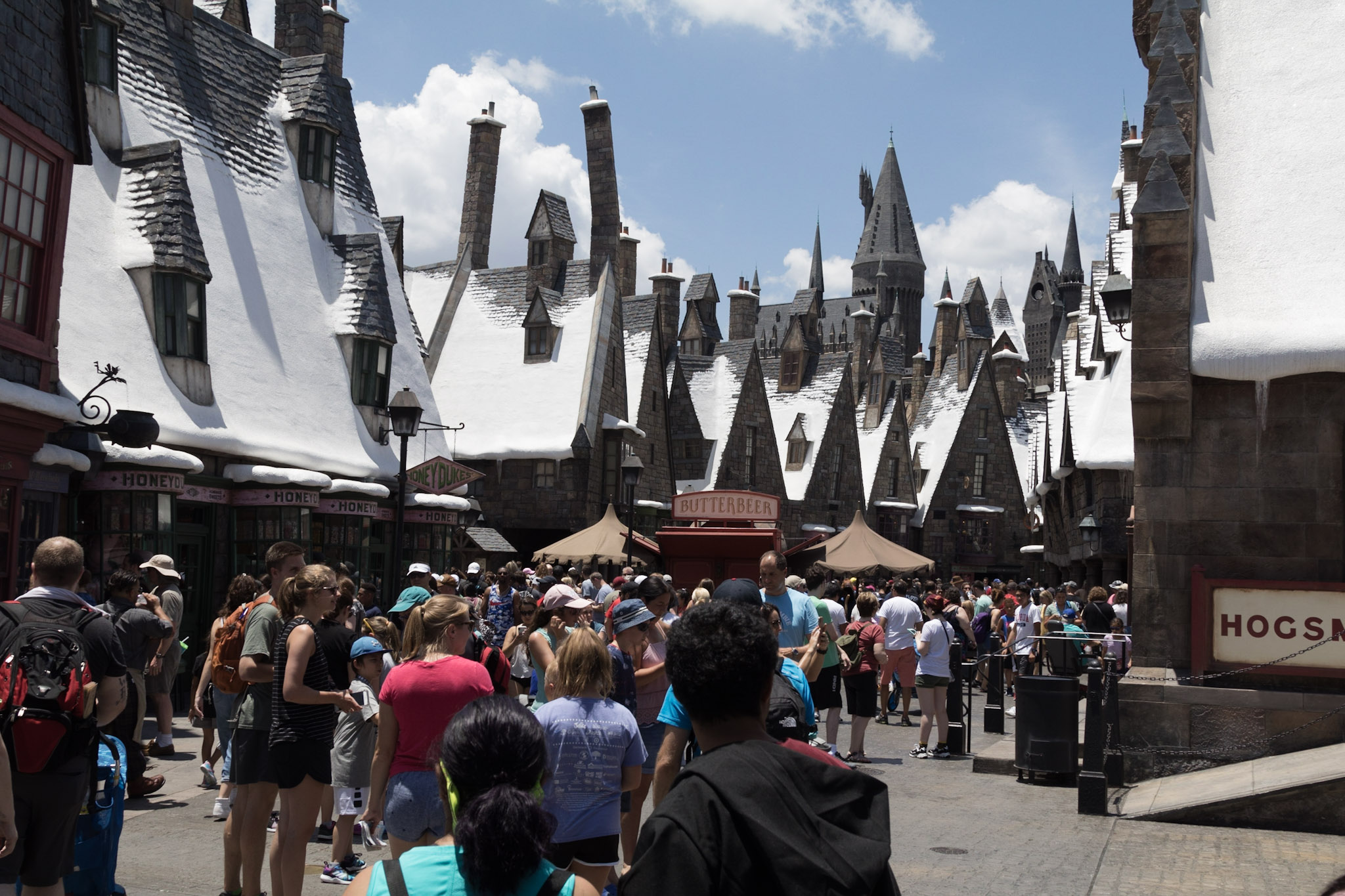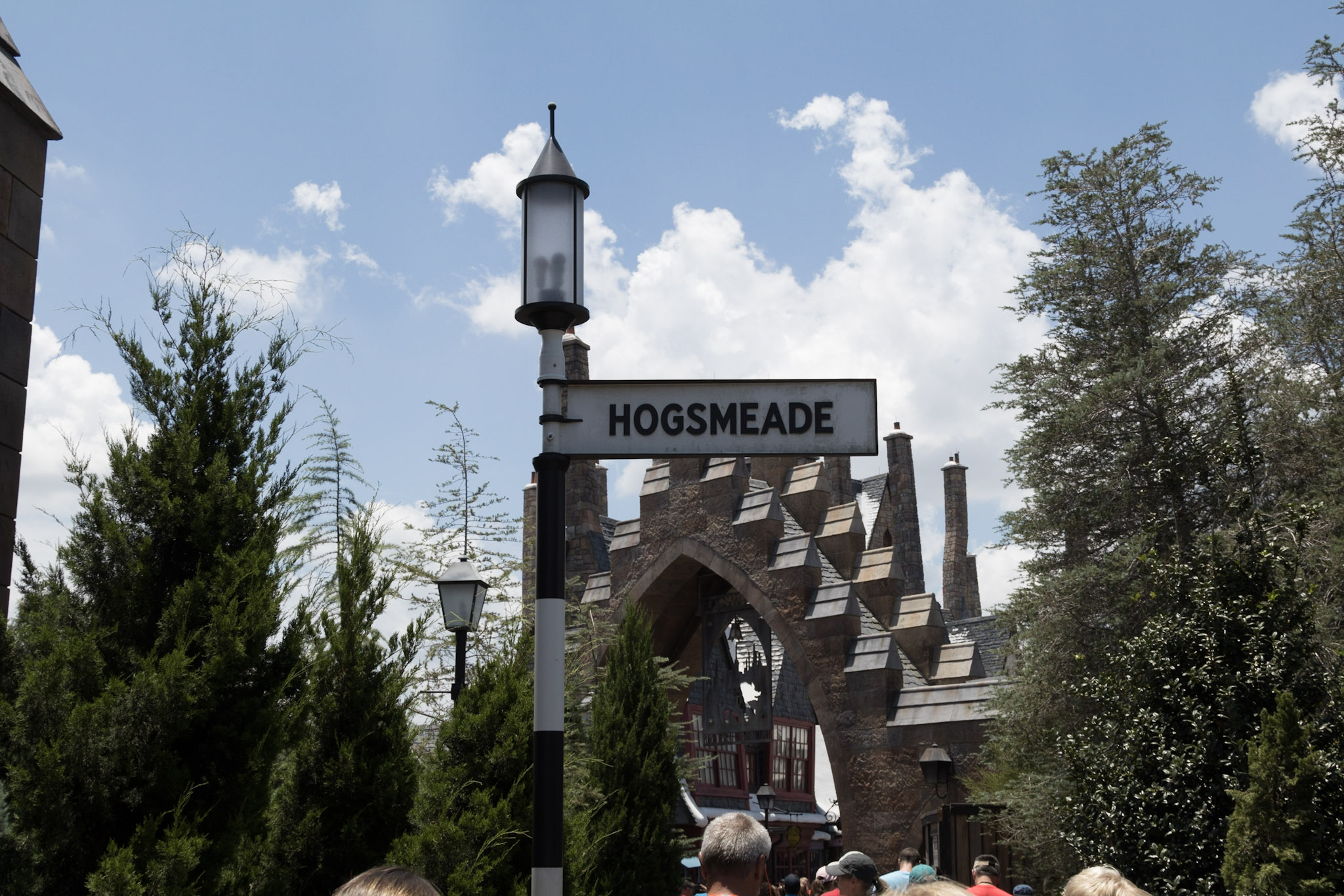 The Hogwarts Express took us straight into Hogsmeade Station. The ride only took a few minutes, but we saw various scenes pass by our “windows.” Once we arrived in Hogsmeade, we caught our first glimpse of Hogwarts!