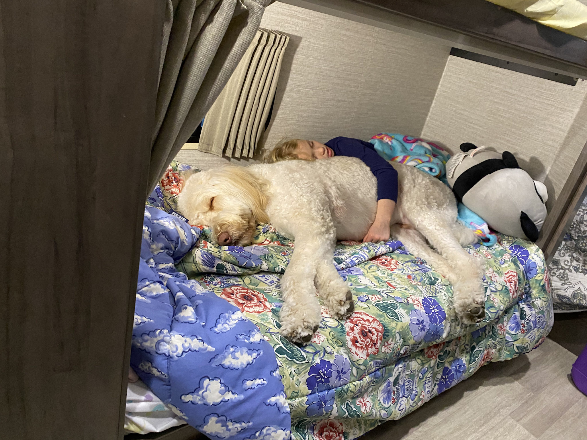 In order to avoid crowds and keep everyone safe, we decided to rent an RV and drive ourselves to CT. In addition to being fun and convenient, one added bonus was that our pup, Ollie, was able to come along. And yes, he is a dog, not a pony, despite being decidedly enormous. He enjoyed co-piloting the RV and snoozing in the bottom bunk bed.