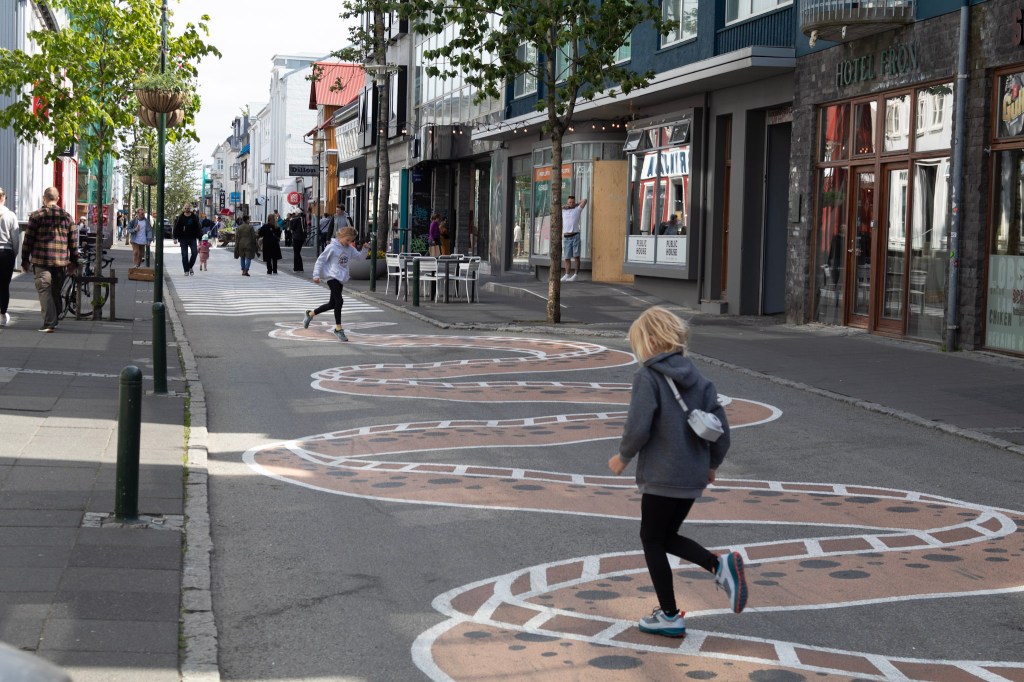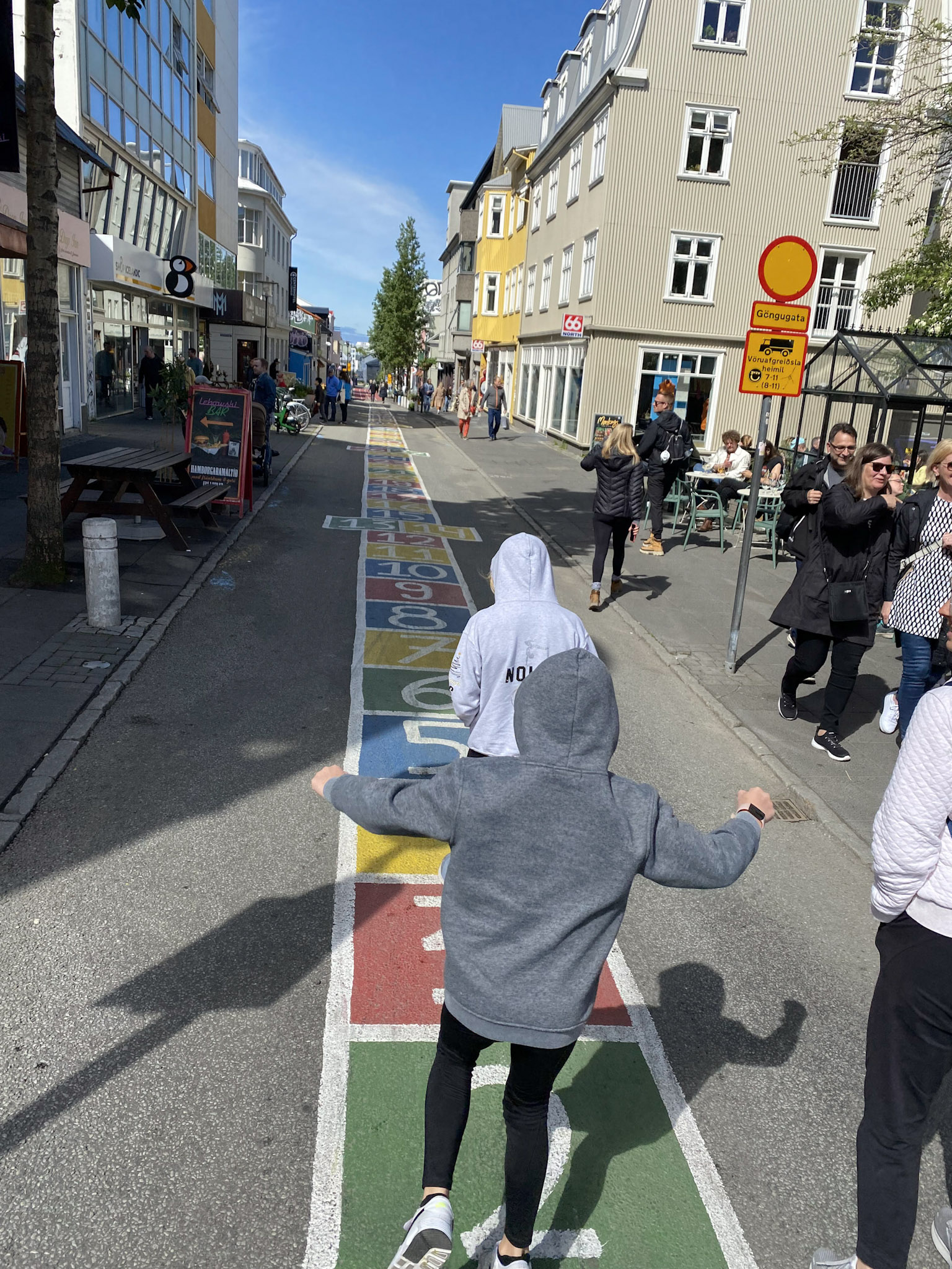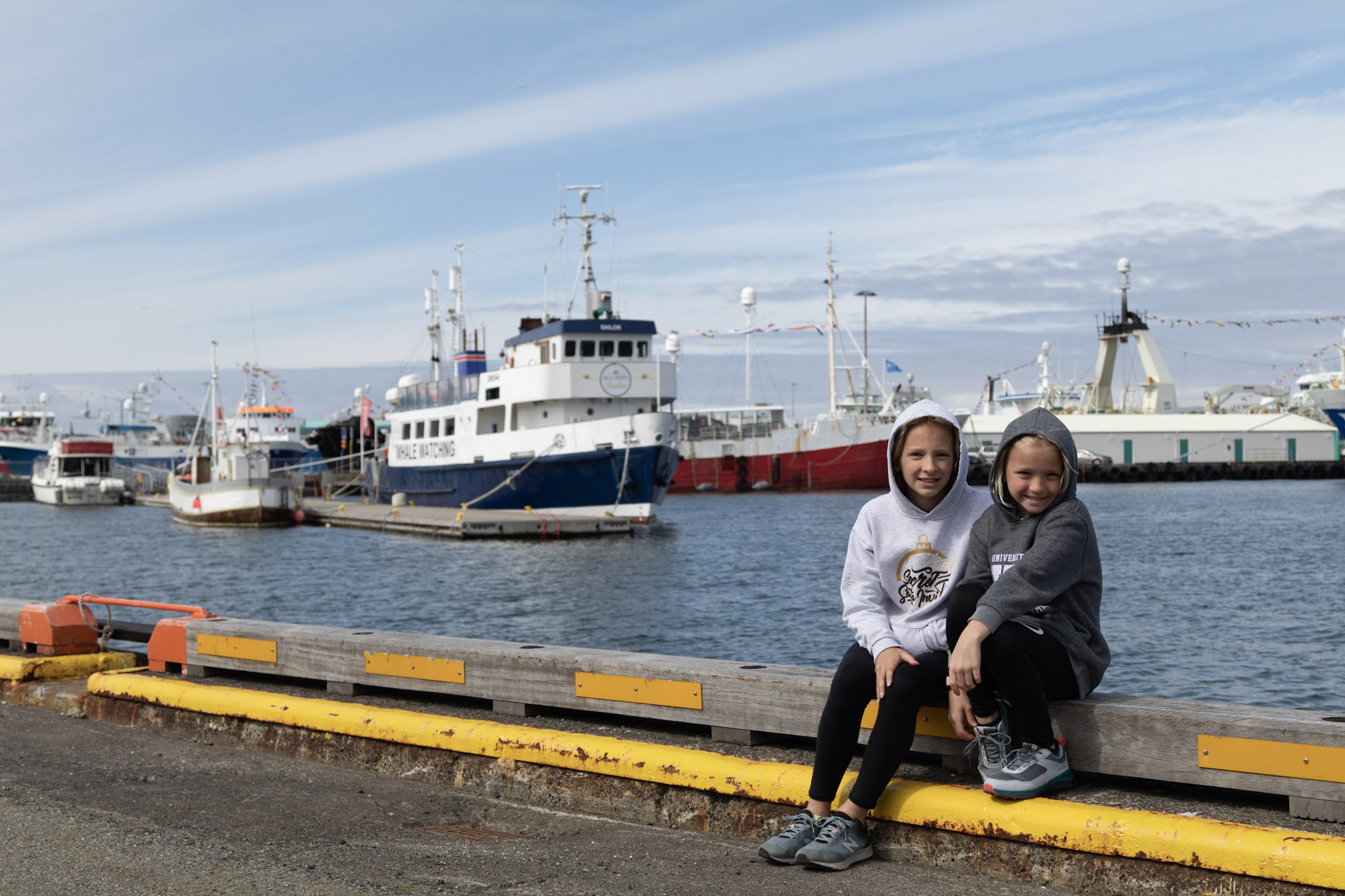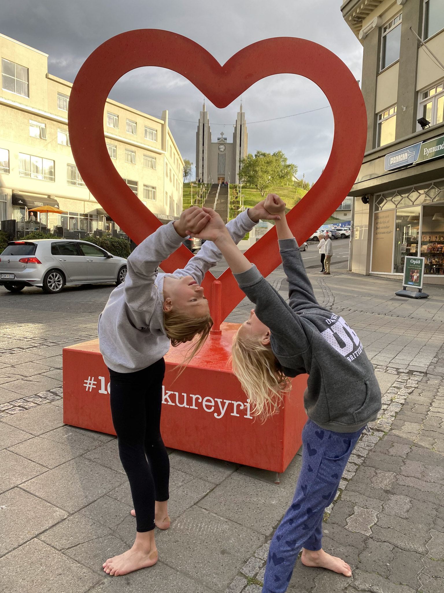We spent the afternoon and evening walking around downtown Reykjavík. We made our way down to the harbor and back through the eclectic city center to the imposing and very unusual Hallgrimskirkja Cathedral, the country’s largest church. The girls enjoyed the public art on the pedestrian streets, and we all enjoyed the snacks and treats along the way.