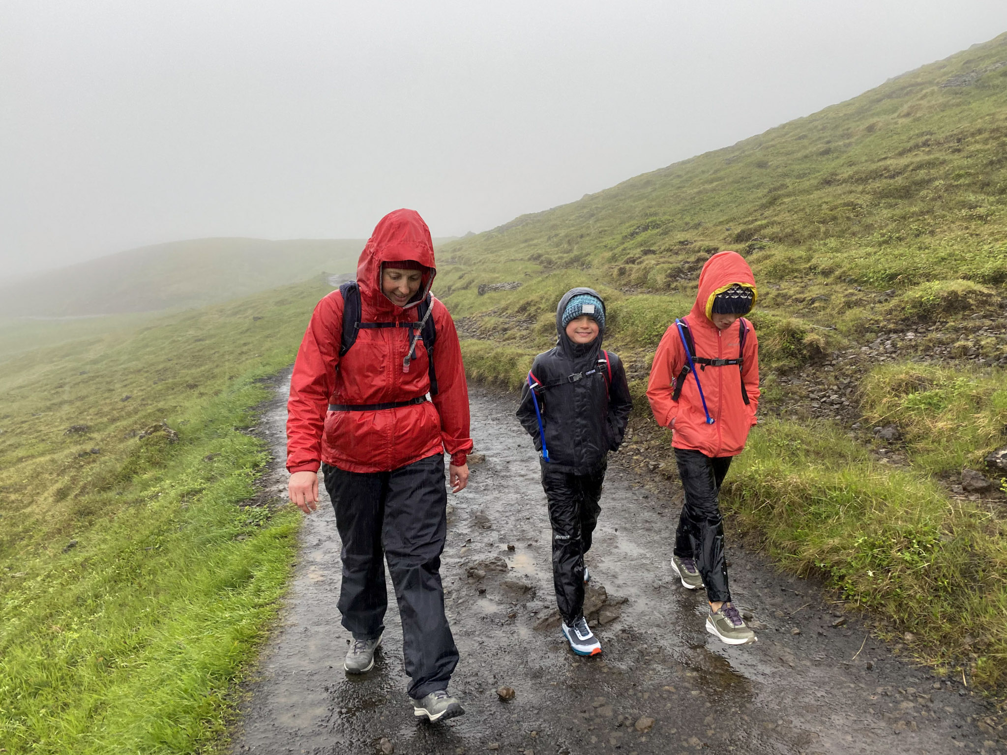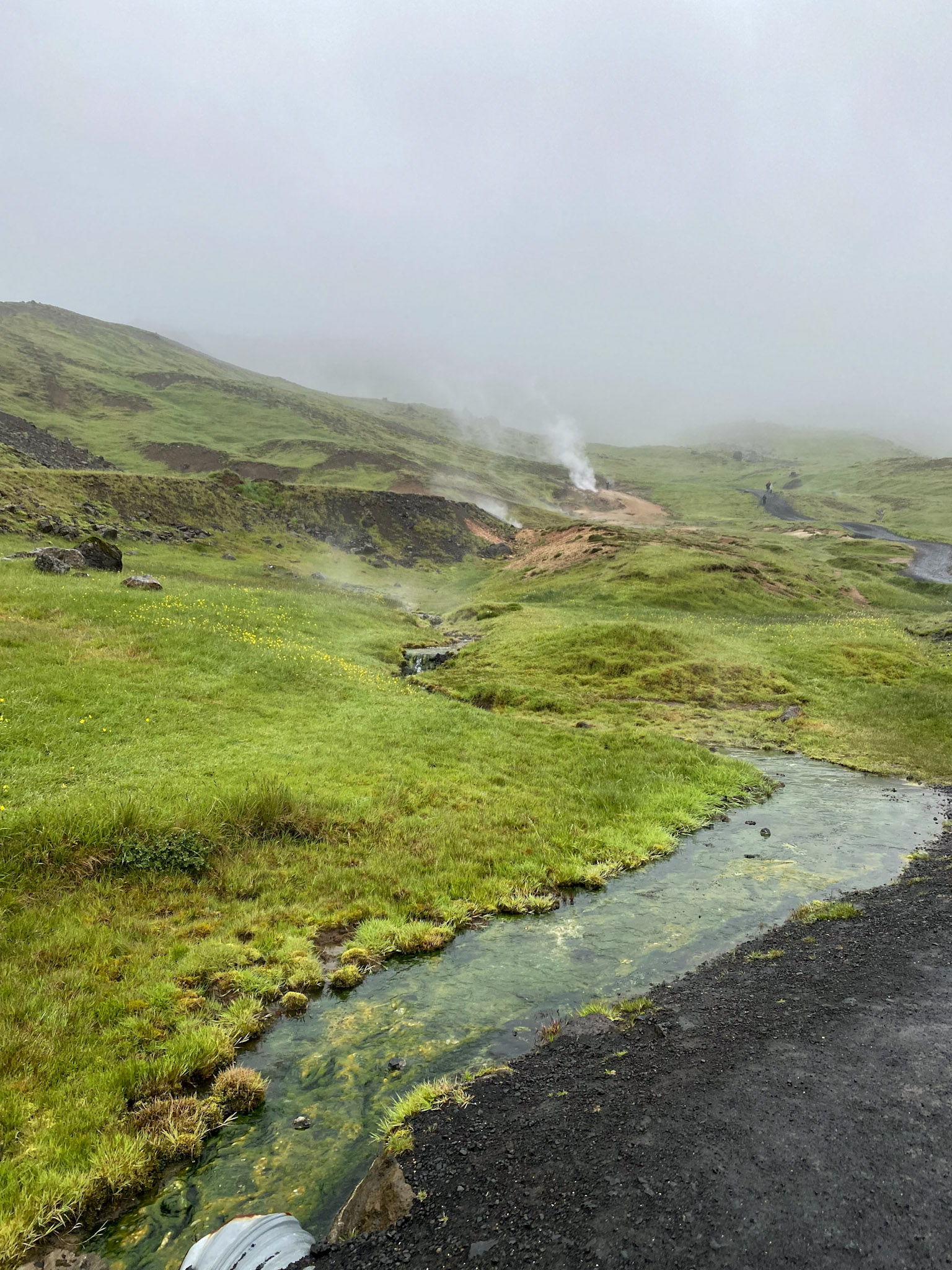We decided to make the 5-mile roundtrip hike to Reykjadalur Hot Springs. The weather was increasingly miserable as the hike went on, culminating in a temperature of 45 degrees Fahrenheit coupled with rain and a healthy dose of wind. Nevertheless, we had on all of our rain gear and hiked up to the promised mountain springs. When we finally got there, the kids changed into their swimsuits (outside, mind you, with no cover and still in the freezing rain) and jumped in. We were expecting to hear them tell us how wonderfully warm the water was, but alas, instead they started shivering. Turns out it was freezing! The hot springs had been diluted by the cold, pouring rain, and for reasons unbeknownst to us, we never even checked the temp. Parenting fail! Needless to say the 2.5 miles back to the car were…not fun.