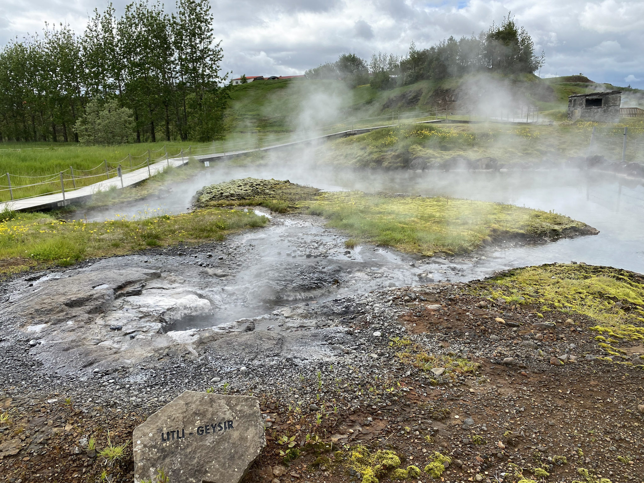 We kicked off our last day in Iceland with a trip to the Secret Lagoon, which is the oldest natural geothermal pool in Iceland. We arrived at the same time as a large tour bus, but luckily I had made our reservations in advance, so after a quick change, we were able to enjoy the pool and the mini geysers that surrounded it. We learned our lesson from earlier in the week and tested the water before jumping right in! We also got a kick out of the elf houses, especially since we re-watched “Eurovision Song Contest: The Story of Fire Saga” in honor of our Iceland adventure.