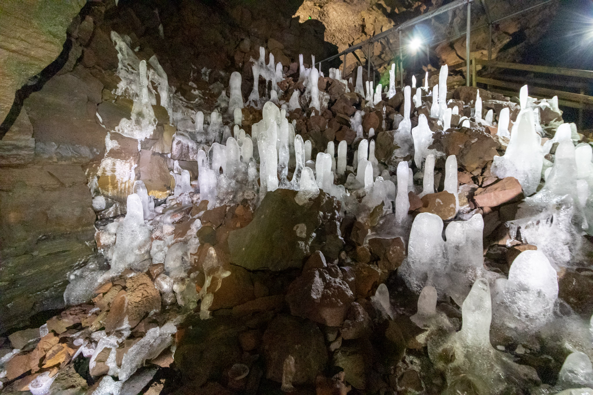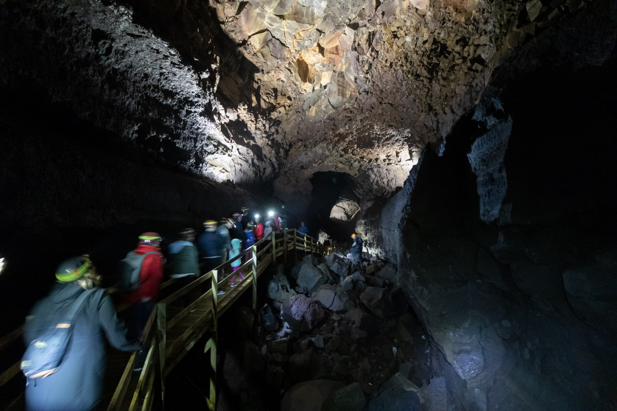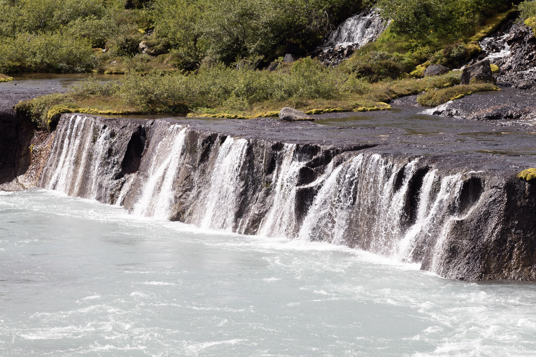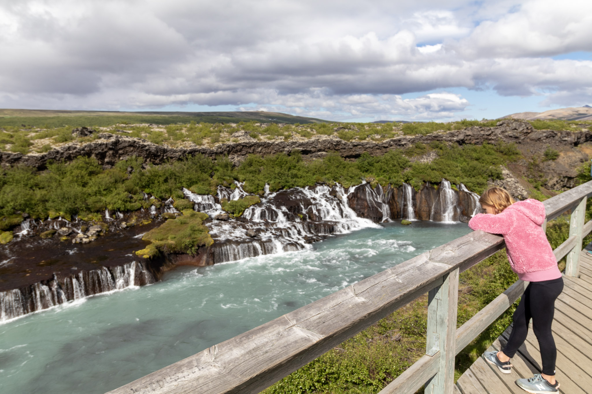 We made a stop to tour Cave Víðgelmir, Iceland’s largest lava tunnel. It was really interesting to learn about how the lava flows created the tunnel and how the lava fields continue to filter the water that flows in the nearby rivers, making them crystal clear. In fact, we stopped at the nearby Hraunfossar and Barnafoss waterfalls to see the powerful and incredibly clear water that had been filtered by the lava rock over hundreds of years.