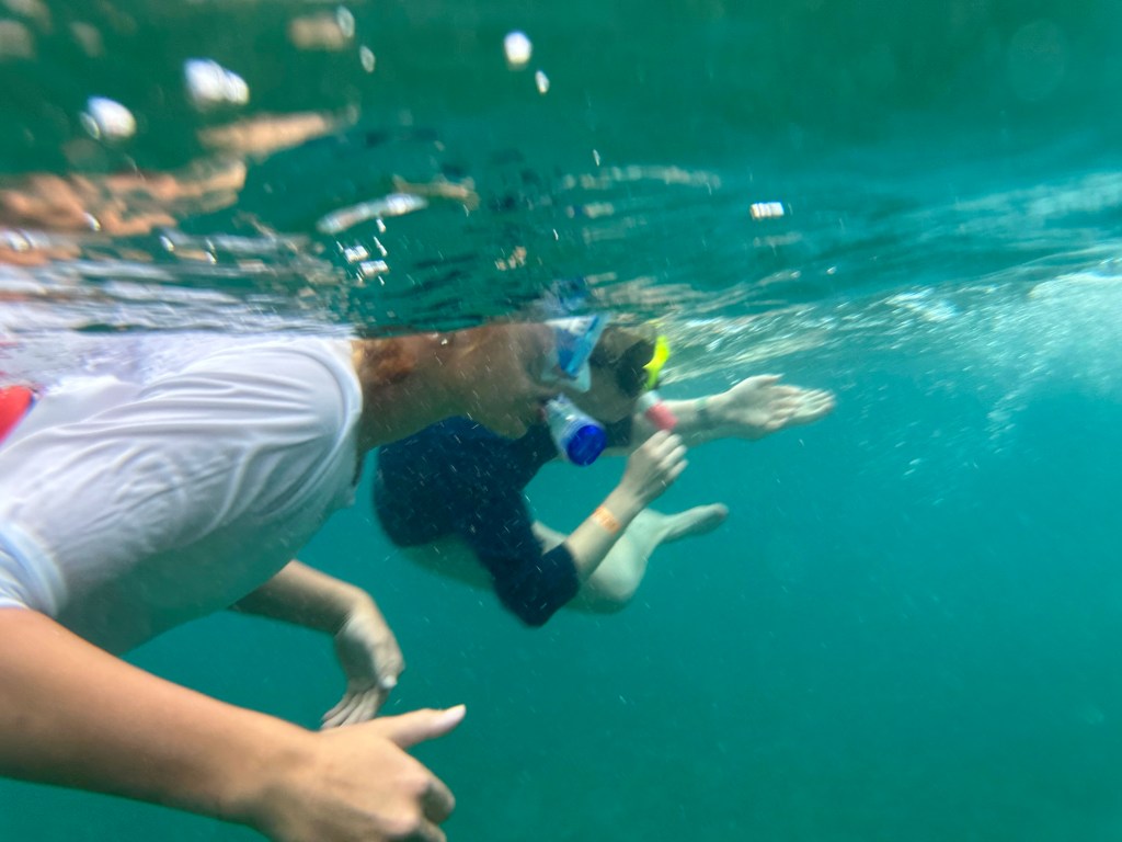 Unfortunately, the beach was overrun with sargassum, so we couldn’t swim right from the shore. Instead, we booked an excursion to go out into the nearby reef to explore and swim with some sharks! We went on a boat tour that took us snorkeling in the protected the Hol Chan Marine Reserve and then over to Shark Ray Alley, where we had the chance to swim with sting rays, nurse sharks, and a host of other sea creatures.